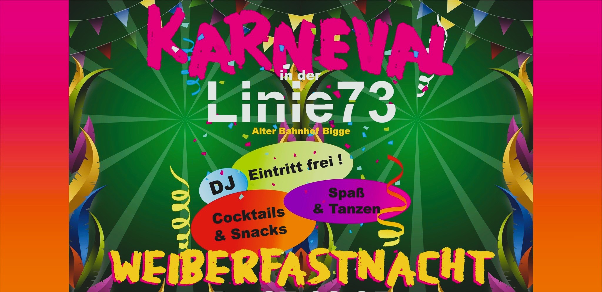Unsere Weiberfastnächte sind legendär und nun setzen wir noch einen drauf: Der NEUE HALT AM ROSENMONTAG ist bei uns in der LINIE 73!